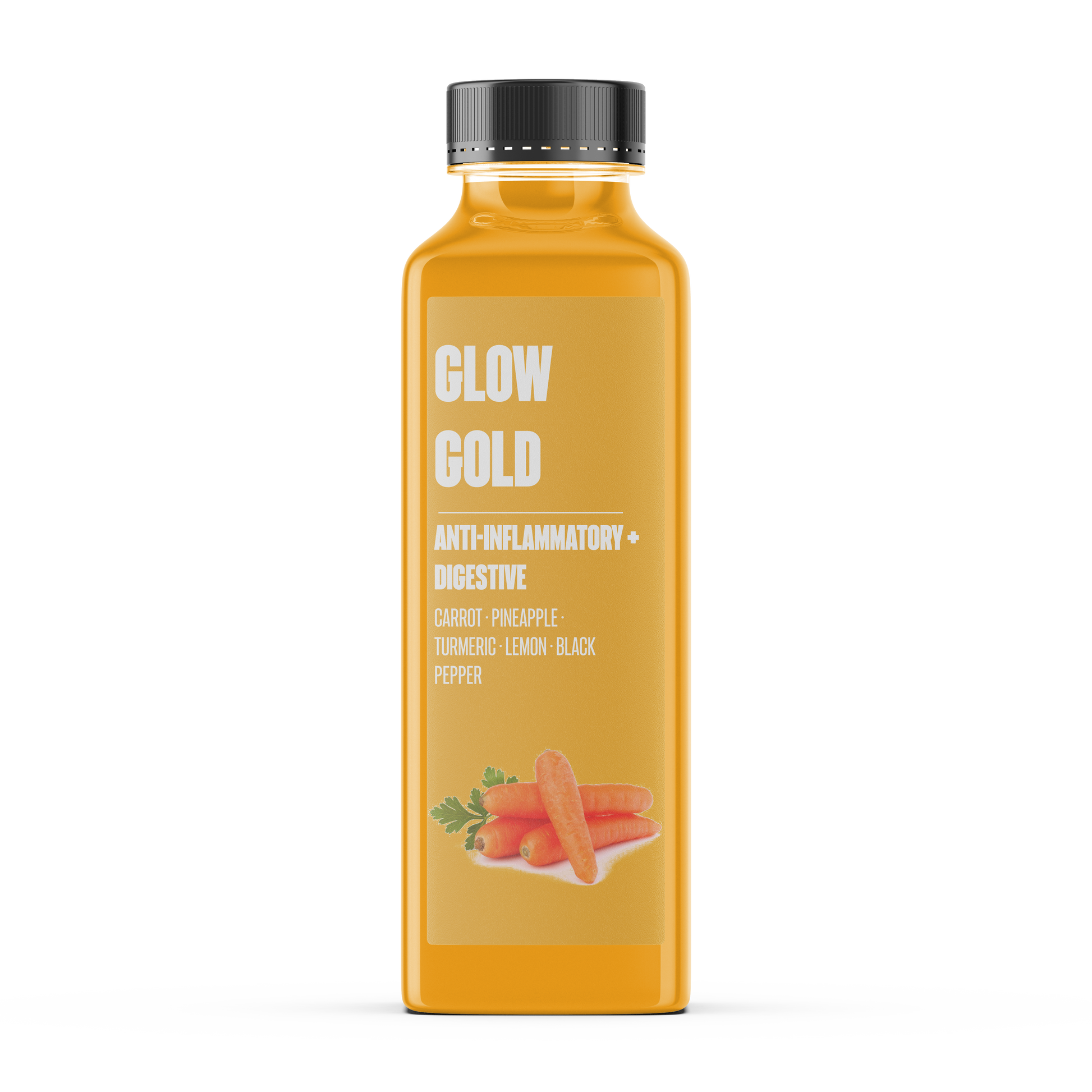 A golden glow-up in a bottle. Earthy-sweet carrot and pineapple enhanced with turmeric and black pepper for maximum absorption.